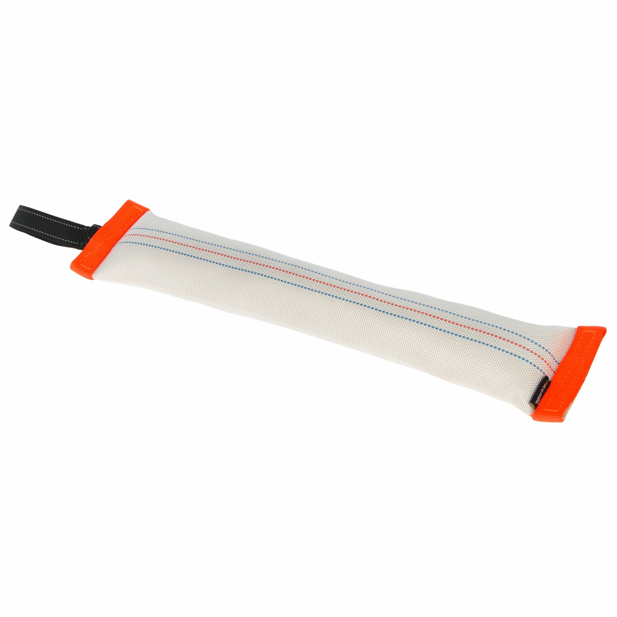 Offrez à votre chien un jouet d’entraînement ultra résistant avec ce boudin de mordant en polyester et caoutchouc. Ses extrémités orange fluo assurent une visibilité maximale, même en extérieur. Flottant et muni d’une dragonne réfléchissante, il allie sécurité et robustesse.