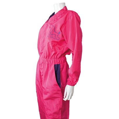 La combinaison de toilettage Isabella fuchsia avec broderie violette associe technicité et élégance pour les professionnelles qui souhaitent allier efficacité et style en salon.