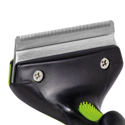 Retire efficacement les poils morts et l’excès de sous-poil pour faciliter le toilettage. Son manche ergonomique assure une prise en main confortable, idéal pour les pelages longs, épais ou denses.