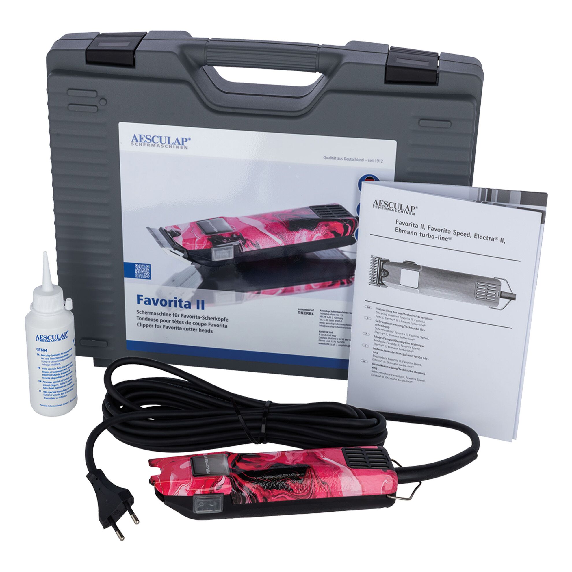 Tondeuse professionnelle filaire “Made in Germany”, robuste et fiable, pensée pour le travail intensif en salon. Coupe précise et constante grâce au système de tête Favorita (Slide), avec câble 5 m, poignée ergonomique et faible échauffement.